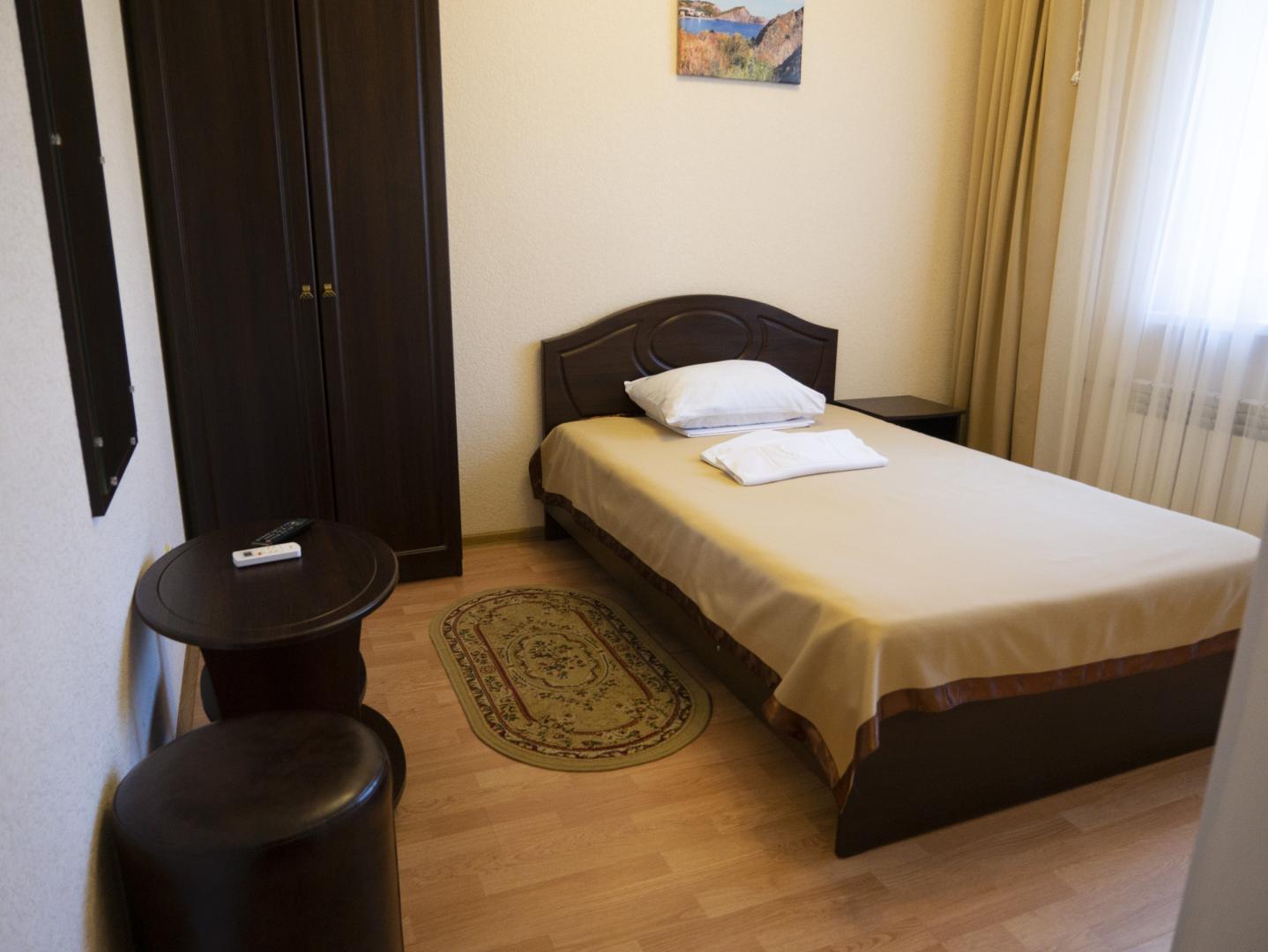 Площадь номера - 18 кв.м. 1 комната. 1 осн. место. В номере: телевизор; холодильник; кондиционер; душ; электрочайник; туалетные принадлежности; 1-спальная кровать.