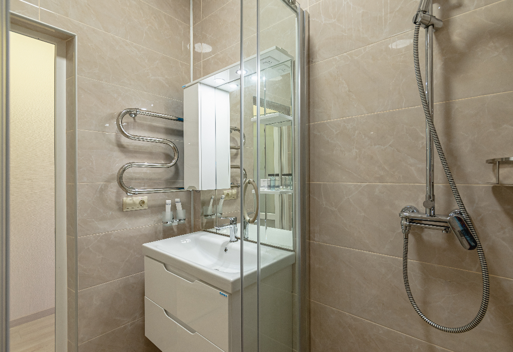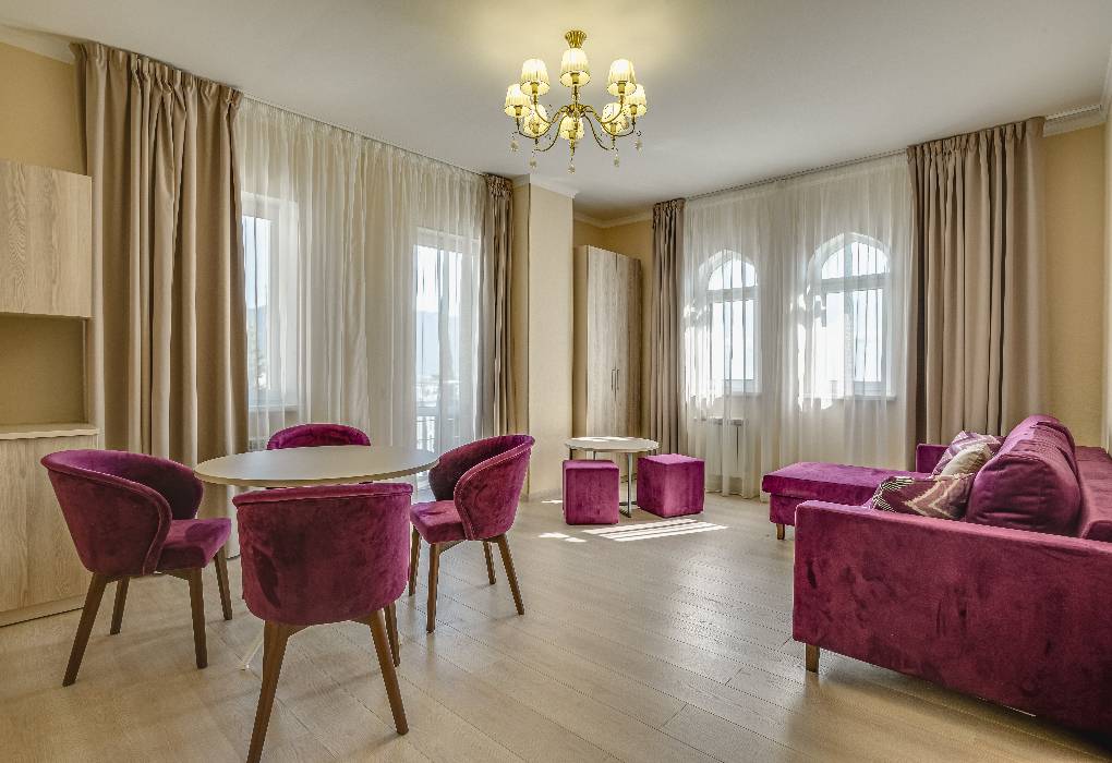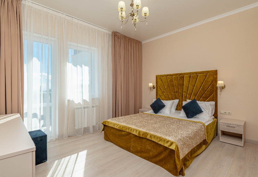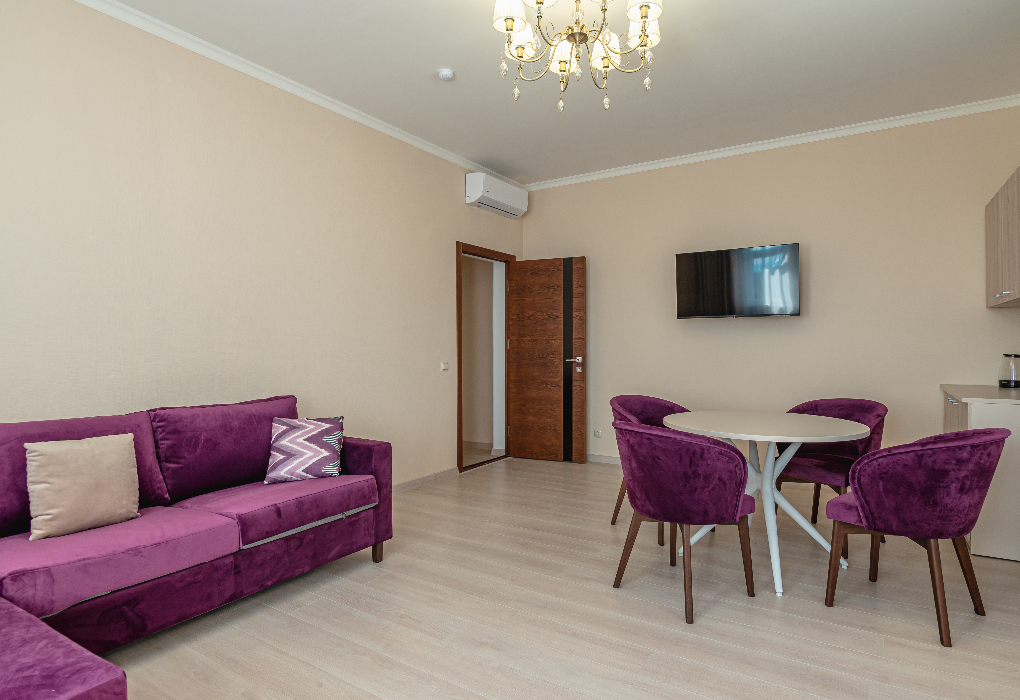 Площадь номера - 40 кв.м. 2 комнаты. 2 осн. места. вид на море. В номере: телевизор; холодильник; кондиционер; душ/ванна; туалет; электрочайник; 2-спальная кровать; диван. 1 доп. место: